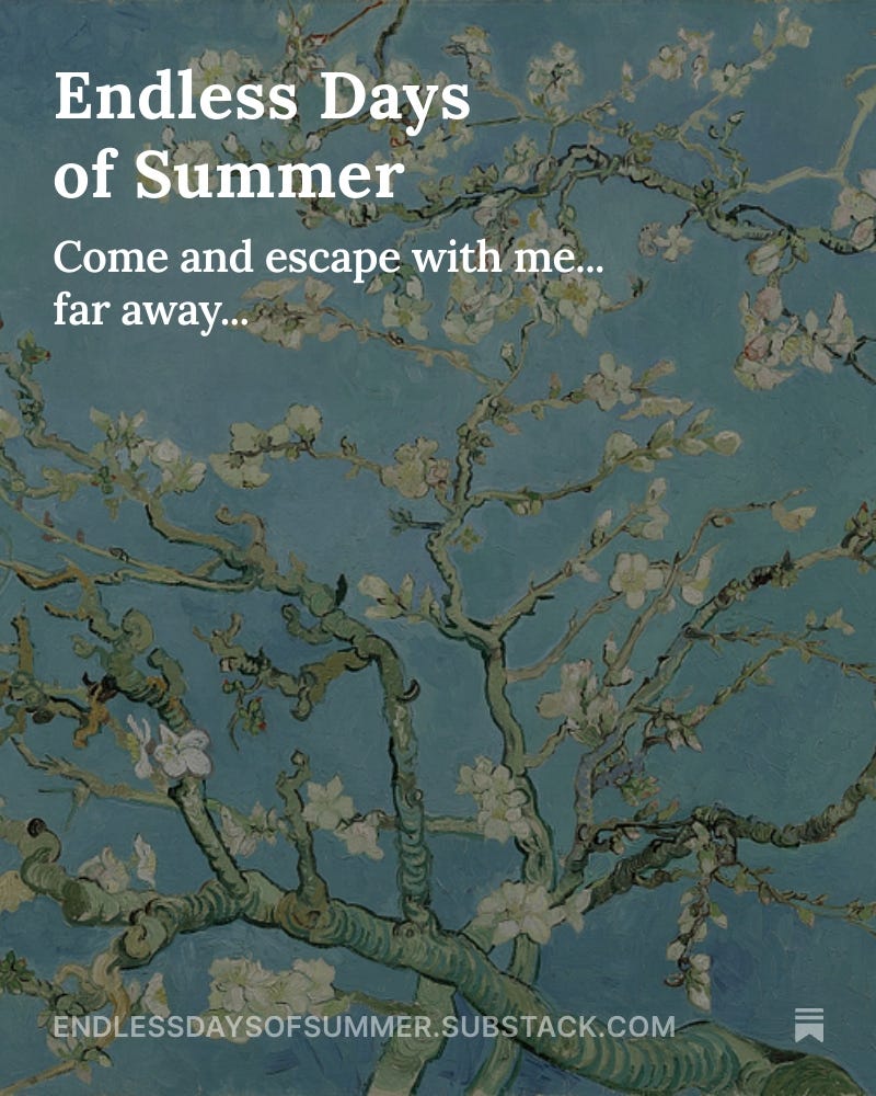 Endless Days of Summer is a newsletter that takes you to another time and place—where myths breathe, and memory lingers like incense in the air.